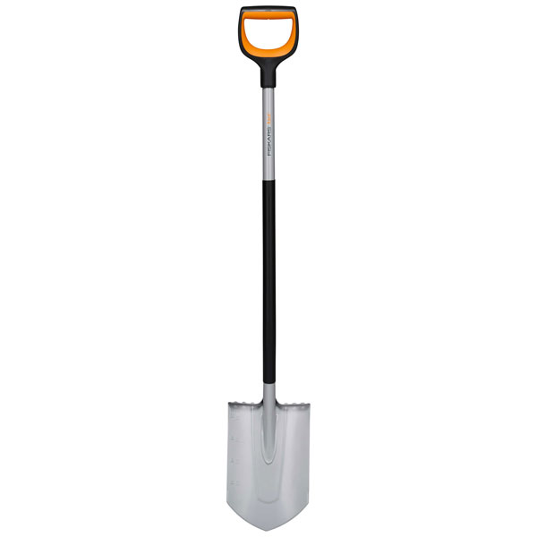 The Fiskars Xact™ Pointed Spade incorporates innovations which allow you to do more of what you love. Its Boron steel head with a non-slip step board is sharpened on the edge and sides, making it ideal for digging holes, edging beds and removing small amounts of soil.