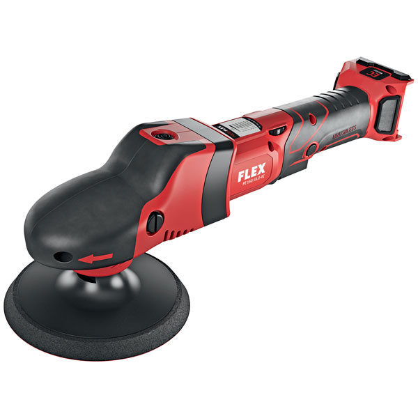 The FLEX PE 150 18.0-EC Rotary Polisher has a highly efficient brushless motor with an innovative combination of planetary and angular gears, reducing noise to an absolute minimum. Its electronic management system (EMS) protects the machine, extends the service life and increases efficiency. Fitted with a continuous speed control trigger: for a gentle start and a lock-on for continuous operation. Polishes with low speed and high torque, e.g. for heat-sensitive surfaces.