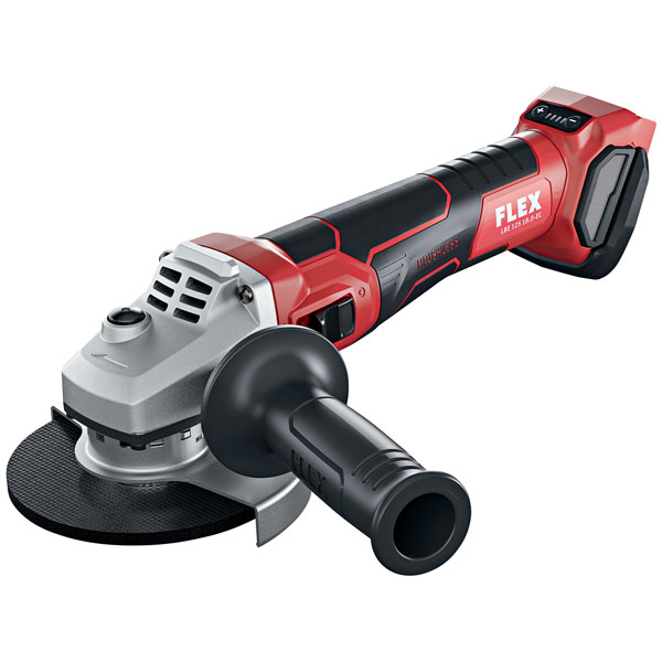 The Flex Power Tools LBE 125 18.0-EC C Grinder has a brushless motor with greater efficiency and longer service life. A removable, protective metal grille provides dust protection. With microprocessor control; soft start, restart protection after a power failure, temperature monitoring, overload protection and CDC-electronic feedback control.