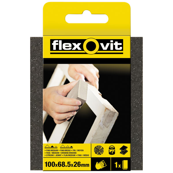 Flexovit 63642556852 Sanding Sponges Standard 100 x 68.5 x 26mm - Fine/Medium