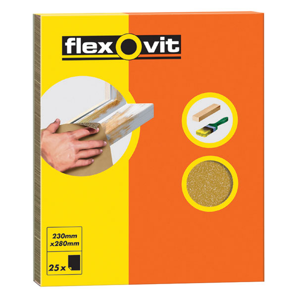 These glasspaper sanding sheets from Flexovit are ideal for sanding wood and paint and for most decorating and maintenance applications around the workshop and home.