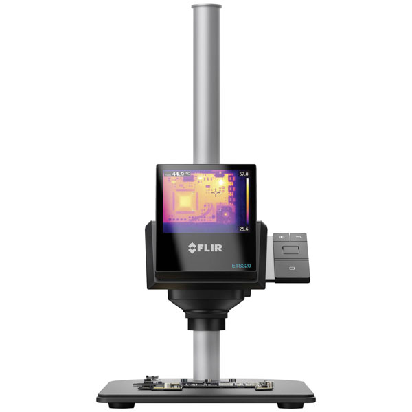 The ETS 320 combines FLIRs advanced thermal imaging with an easy-to-install surface mounted table stand for hands-free measurement circuit boards and other small electronic components. The camera is sensitive enough to have a low temperature difference with an accuracy of ± 3% to recognize, so that product designers and test engineers are able to detect possible errors quickly points The 320 x 240 IR detector offers more than 76000 temperature measuring points and prevents inaccurate readings due to improper measurement tools. Particularly for laboratory electronics tests, the battery-operated ETS 320 via USB to your PC for immediate analysis and release of thermal data.
