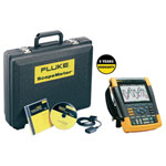 Use the TrendPlot paperless recorder function to record for up to 22 days to find intermittent faults which may be due to bad connections, dust, dirt, corrosion, broken wiring or connectors etc. Line outages, sags or starting and stopping motors can also cause issues. The TrendPlot function helps find those faults by plotting max./min. and average over time or by plotting any combination of voltage, current, temperatures, frequency and phase for all inputs, all with a time stamps The ScopeMeter has two USB ports which are fully isolated from the measuring inputs. One of them is a USB host for use with memory sticks, the other is a standard USB for connection to a PC. Supplied with a BC190 battery charger/mains adaptor, BP291 4800 mAh battery pack, 4 x VPS410 (red, blue, grey, green) voltage probe sets, hand strap affixed to the instrument, hangstrap (user selectable for left- or right-hand use), multi-language user manuals on CD-ROM, FlukeView® demo package with restricted functionality and USB interface cable for PC connectivity.