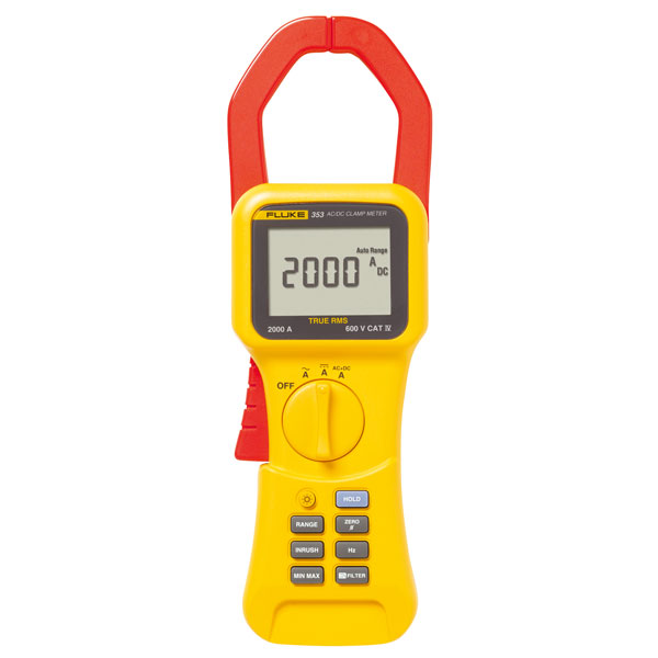 Confidently take reliable readings with this Fluke 353 digital clamp meter. This is the tool of choice for high current amp meter measurements up to 2000A. The extra-wide jaw easily clamps around large conductors, typically found in high-current applications. The extra rugged design and CAT IV 600 V, CAT III 1000V ratings add an extra element of user protection when taking high-powered measurements.