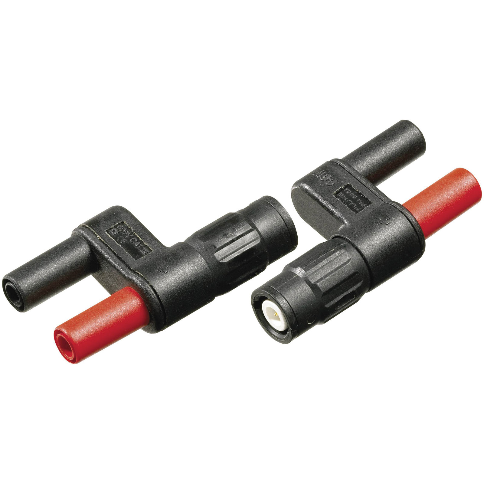 Measurement adapter, 4mm double jack socket to BNC plug. The set contains two measuring adapter. Nominal voltage: 600 V rms CAT III 600V .