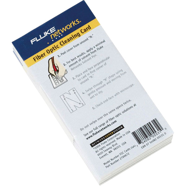 The Fluke Networks NFC-CARDS are Fibre Optic Cleaning Cards. The cards each have 12 sealed cleaning areas from which the cleaning solvent can be applied to a swab.