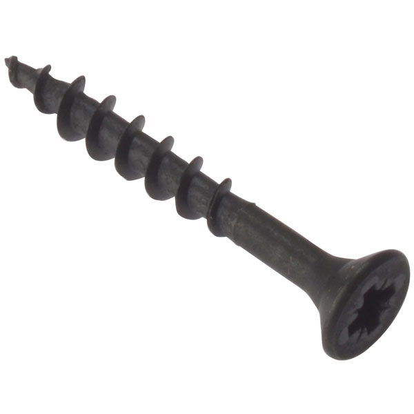 These Forgefix Pozi Carcass Screws have an extremely coarse single thread. The have a black phosphate coating for increased durability and a self drill point for easy installation. Designed specifically for chipboard and MDF (medium density fibre) board and carcass assembly. Phosphate coatings are made up of thin crystalline layers of phosphate compounds that adhere to the surface of the fixing or fastener. The phosphate crystals are porous and can be formed from zinc, manganese, or iron phosphate solutions. Phosphate coatings offer good corrosion resistance and have an excellent ability to absorb supplementary coatings which improves appearance, corrosion resistance and resistance to abrasion. The Pozidriv screw is similar in appearance to the classic Phillips cross-head, but in fact is very different. The Pozidriv has four additional points of contact, and does not have the rounded corners that the Phillips screw drive has. The biggest advantage it offers is that, when used with the correct tooling in good condition, it does not cam out, allowing great torque to be applied. The Pozidriv screw can easily be distinguished by a line embossed in the screw head at 45° to the slots for the driver. Coarse thread screws have an extremely sharp point and are designed to penetrate plasterboard skin. The coarse thread eases in to the board then the timber baton holding the board firm.