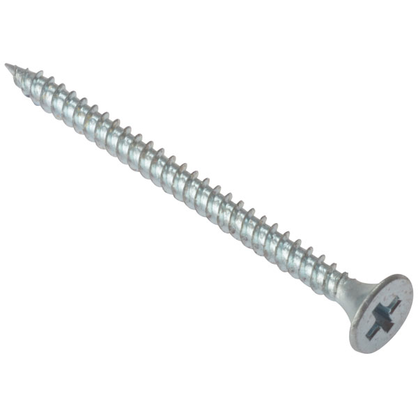 These Forgefix Phillips, twin fine thread Drywall Screws have a zinc plated finish for increased durability. The screws come complete with a Phillips No.2 insert bit. Their Bugle Head allows the screw to sink effortlessly into the dry lining eithout the need for countersinking, which in turn minimises the damage to the surface. Designed for fitting dry linings to studding. Zinc coatings prevent oxidation of the protected metal to create a longer lasting finish. It does this by forming a barrier and by acting as a sacrificial anode if this barrier is damaged. Zinc oxide is a fine white dust that (in contrast to iron oxide) does not trigger a breakdown of the substrate’s surface integrity as it is formed. The zinc oxide, if left intact, can act as a barrier to further oxidation, in a way similar to the protection afforded to aluminium and stainless steels by their oxide layers. The Phillips screw has four simple tapered slots. It is designed so that a Phillips tip screwdriver can turn a Phillips screw with increasing torque. When the torque gets to be too strong for the tip then the screwdriver tip winds itself out of the screw thus preventing over-tightening and or damage to the screw head. Fine thread screws have an extremely sharp point which not only pierces the plasterboard skin but will also allow the screw to drill through thin steel base structures.