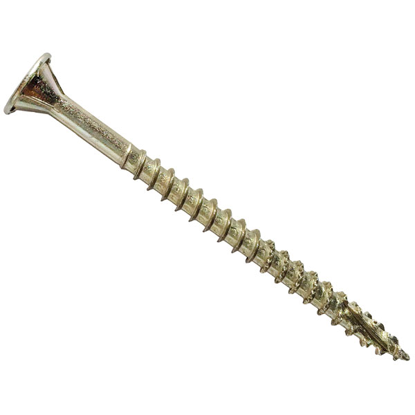 Reduced drive torque and no pre-drilling mean quick installations, whilst the fix remains firm with improved pull-out. The Under head ribs are designed for self-countersinking producing a flush secure finish on flooring. Double cutting point reduces splitting and drive time and is capable of penetrating 0.8mm steel.