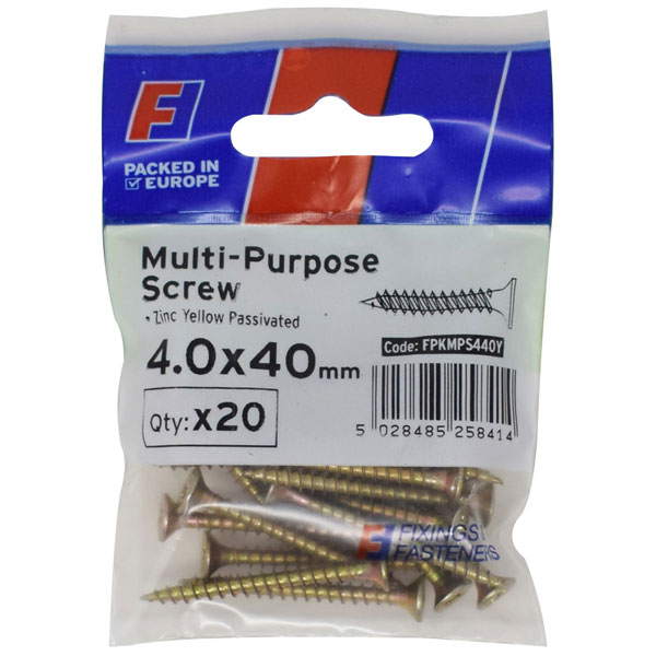 ForgeFix FPKMPS440Y Multi-Purpose Pozi Screw CSK ST ZYP 4.0 x 40mm ForgePack 20