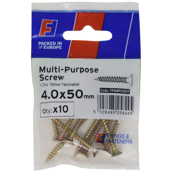These Forgefix, Multi-Purpose Pozi Compatible Screws feature a countersunk, pozidrive compatible, recessed head. They have a zinc yellow passivated finish offering more corrosion resistance than zinc plated products, thanks to an additional passivation process.