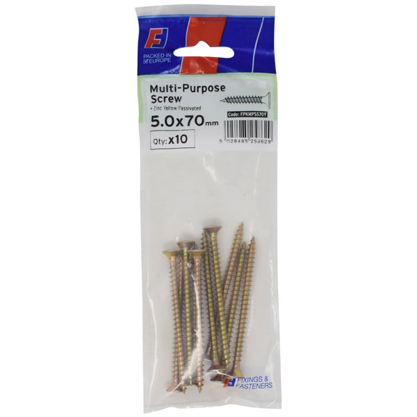 ForgeFix FPKMPS570Y Multi-Purpose Pozi Screw CSK ST ZYP 5.0 x 70mm ForgePack 10