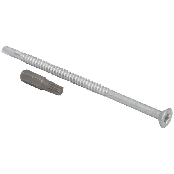 These light section roofing screws are suitable for fixing timber to steel thicknesses of 1.5mm to 4mm. Each pack is supplied with a free Torx compatible bit.