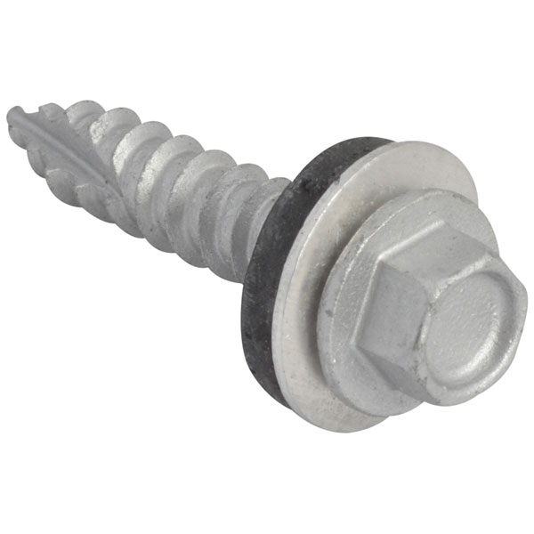 The screws have a rubber washer beneath the aluminium flange which expands under pressure and forms a permanent weather seal. They are zinc plated and have an 'Elementech' coating for superior corrosion resistance, which has been salt spray tested to 1,000 hours.