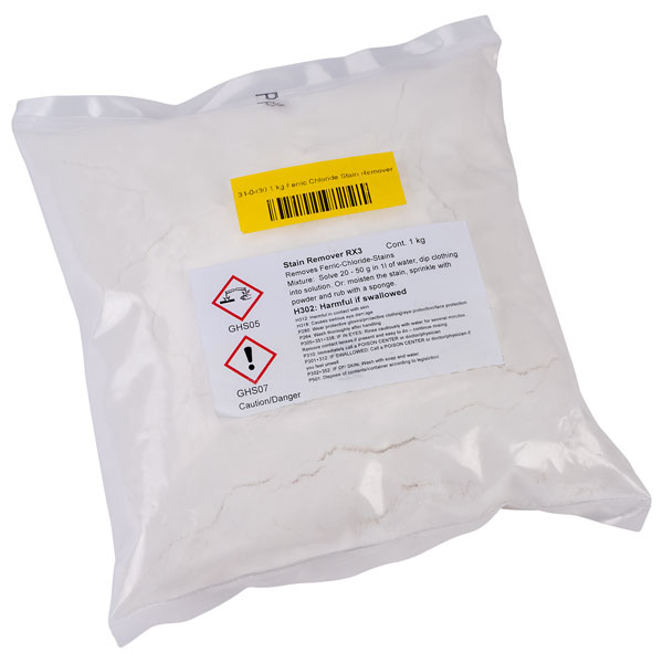 This ferric chloride stain remover can be used for the removal of ferric chloride stains from clothing, PCB tanks, benches and other affected areas.