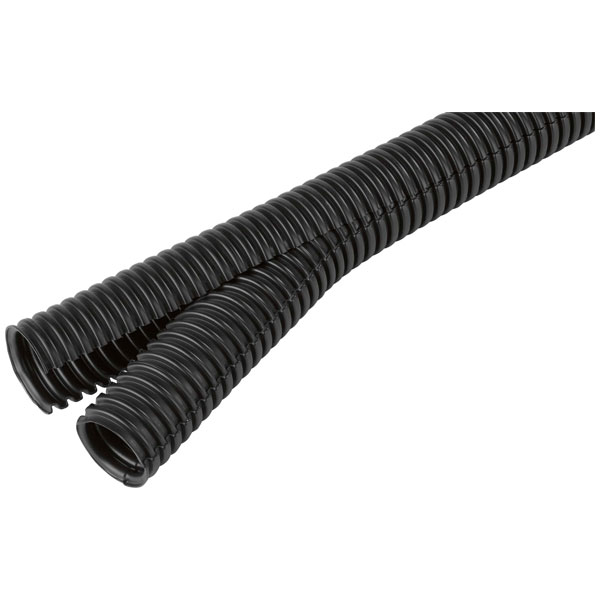The Fränkische Rohrwerke Co-flexPP-UV conduit is a 19.5 mm black protective sheathing designed for cable protection. Made to withstand heat and environmental exposure, it is 10 meters long and ideal for organising and bundling cables. This quick fit conduit provides robust protection for various cable installations.