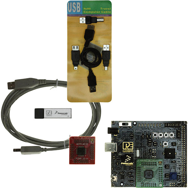 The kit includes a DEMOJM base board, a red MCF51JM128 daughter card and a green MC9S08JM60 daughter card. The included kit can first be used to demonstrate the features of the MC9S08JM60 devices, starting with an on-chip USB device controller and transceiver. Then, move to MCF51JM128 with an on-chip USB On-The-Go (OTG) dual-role controller.