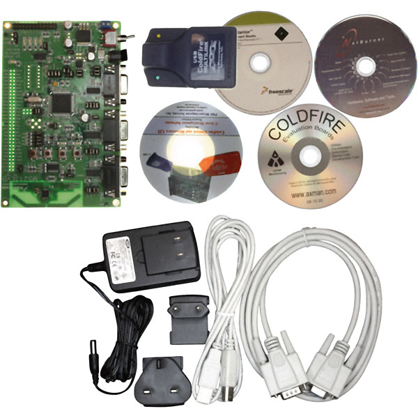 Demonstrating easy to get, easy to use ColdFire development support, the M5213EVB is a low cost development system for the Freescale MCF521x ColdFire microcontroller family.  Application development is quick and easy with the included DB9 serial cable and dBUG firmware monitor. The BDM port is compatible with standard ColdFire BDM / JTAG interface cables and hosting software, allowing easy application debugging and development with a variety of hardware and software tools.
