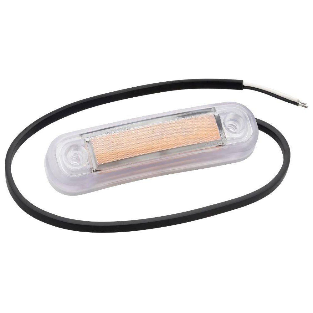 Fristom's 90047 end marker light, also known by the alternate description 1487659 and FT-045 Z LED, is designed for vehicle lighting applications, specifically for use in caravans, camper trailers, trailers, and car trailers. This light operates effectively within a voltage range of 12 V to 24 V, ensuring compatibility with a variety of vehicular electrical systems. It features open cable ends for versatile installation, allowing it to be seamlessly integrated into existing setups. The product is constructed with an orange transparent lens, providing high visibility and durability suitable for both heavy goods vehicles and car accessories. Engineers may find this end marker light particularly advantageous in applications where reliability and robust performance are critical, such as in trucks and other commercial vehicles.