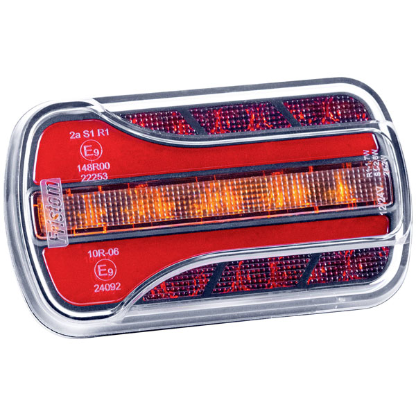 Fristom FT-350 LED Trailer Tail Light, with the Manufacturer's Part Number 3385335, is a versatile lighting solution designed for vehicle applications. This advanced LED tail light operates across a wide voltage range of 12V, 24V, and 36V DC, making it ideal for use in various vehicles such as caravans, camper trailers, car trailers, and heavy goods vehicles. Engineered for durability and reliability, the FT-350 LED features an open cable-end design, allowing for flexible installation in diverse vehicle configurations. It is particularly suited for use in car, HGV, and truck accessories, serving critical functions in vehicle lighting systems. The robust construction and efficient light output ensure optimal visibility and safety in vehicular environments.