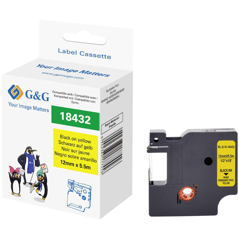 G&G RL-D-Vi-18432-BK/YE-12MM*5.5M Vinyl Labelling Tape Yellow/Black 12mm 5.5m