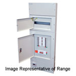 The board has a modern style finished in RAL7035 powder paint and complies with BS EN 61439-3.