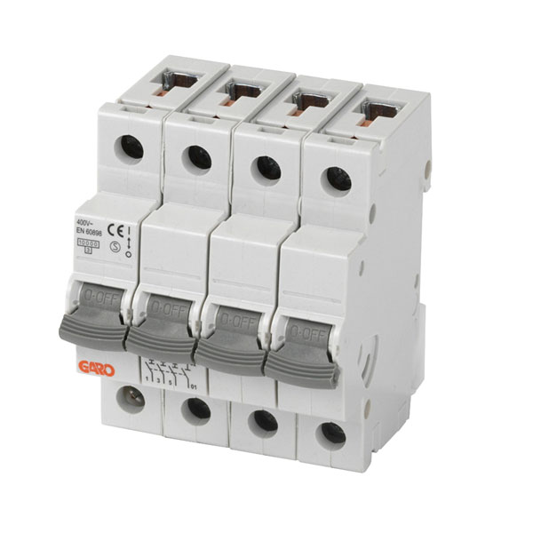 A miniature circuit breaker from Garo's MCBGSC series. The MCB has a C curve tripping characteristic and is capable of protecting a system against short-circuit current up to 10kA.