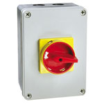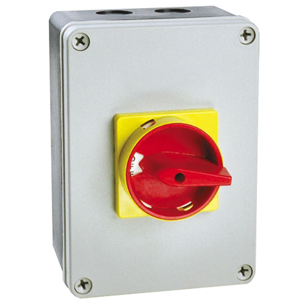 The Garo SS 463 63A safety switch is an IP65 rated, 4 Pole Rotary Isolator Switch is in a grey enclosed polycarbonate body.