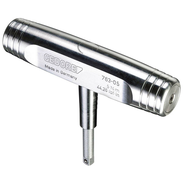The Gedore 763-05 1947958 torque wrench is a precision tool designed to apply a specific torque, ranging from 5 to 5 Nm, with a 1/4 inch (6.3 mm) drive. Ideal for delicate mechanical applications, it ensures accurate fastening without over-tightening. Commonly used in automotive and precision engineering tasks, it guarantees consistent and reliable results.