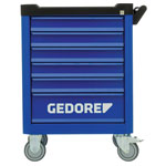 The Gedore 3100707 is a robust workshop trolley made from steel plate in a blue factory colour. It is designed for efficient tool and equipment transport within professional settings. Typical applications include workshops and garages for organised tool storage and easy mobility.