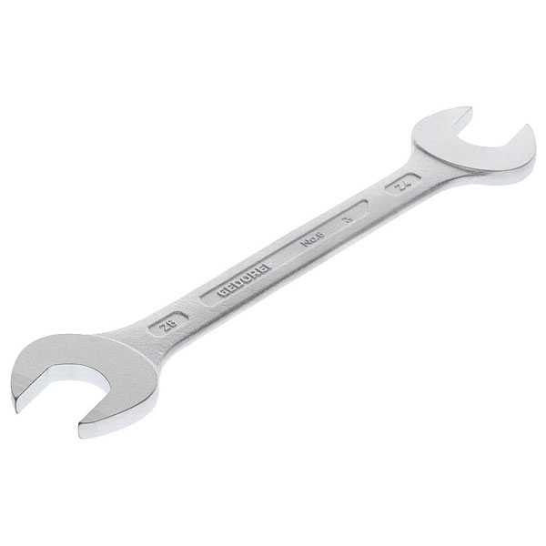 The Gedore double-ended open ring spanner is designed for metric sizes 24 to 26 mm. This tool offers versatility and precision in various tightening and loosening tasks. It's ideal for automotive and mechanical applications where accessibility and efficiency are crucial.