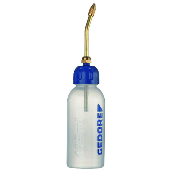 Gedore's 298-01 Oil can is a 125 ml capacity tool designed for precision lubrication tasks. Constructed from durable materials, it features a flexible spout for easy access to hard-to-reach areas. Ideal for use in workshops, garages, and maintenance environments.