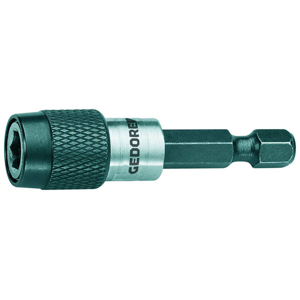 The Gedore 700 6530550 is a magnetic bit holder designed for 1/4" bits, measuring 60.5 mm in length. Manufactured by Gedore, it features a robust construction ideal for secure and efficient bit holding in various mechanical and industrial applications. This tool is perfect for use in machine tool chucks and other professional settings requiring precision and reliability.