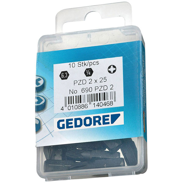 Gedore 6541400 Screwdriver Bit 1/4" value pack 10 Pieces PH 2 L