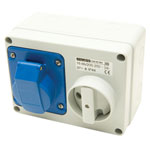 Switched 16A 230V 2-pole horizontal socket outlet with isolating switch, ideal for energy distribution in both commercial and industrial environments. The outlet is splashproof to IP44. The outlet incorporates an interlocking rotary switch.