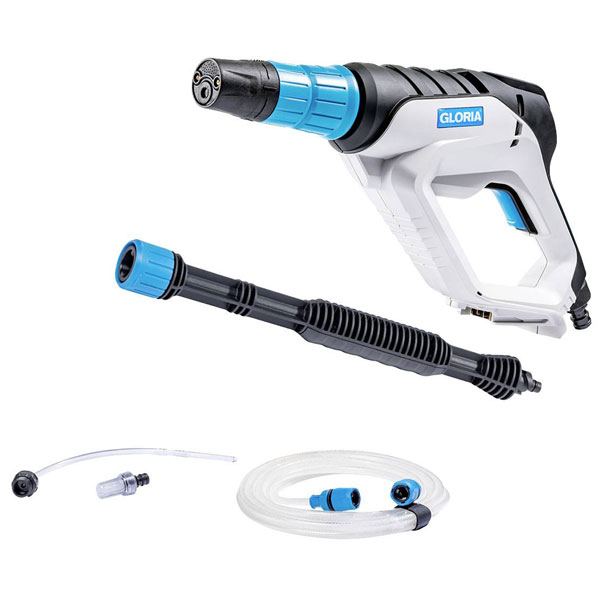 Gloria Haus und Garten manufactures the MultiJet 18V, a versatile battery jet washer. This lightweight pressure washer is ideal for garden cleaning and car washing. It features a powerful 18V battery ensuring high mobility and convenience.