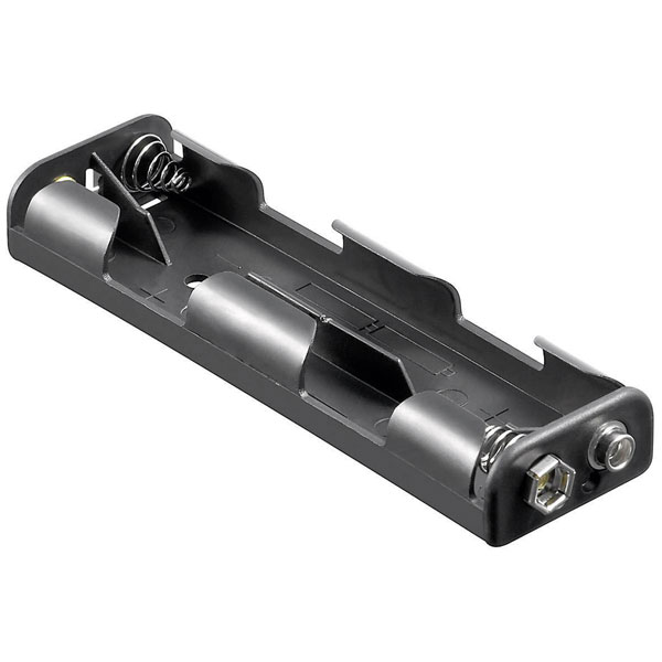 The Goobay 11985 battery tray is designed to hold four AA batteries in a compact space of 109 x 32 x 16.2 mm. Its reliable stud and socket design assures secure battery connection, making it ideal for electronic projects and devices. This robust battery holder is a staple accessory for both rechargeable and standard power needs.