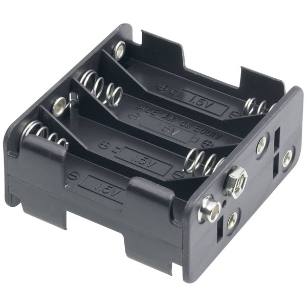 The Goobay 12470 battery tray is designed to hold eight AA cells securely, with dimensions of 63 x 58 x 29.5 mm. Ideal for powering small electronic devices, it features a stud and socket design for reliable connectivity. This black battery holder is a practical accessory for rechargeable battery setups.