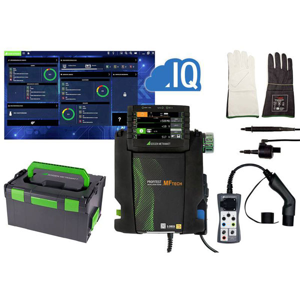 The Gossen Metrawatt PROFiTEST MF TECH EVSE-Set is a comprehensive electrical tester kit, calibrated to DAkkS standards, suitable for VDE standards 0100, 0100-600, 0105, 0411, and 0413. This VDE tester kit is ideal for ensuring compliance and safety in electrical installations, particularly for testing EVSE (Electric Vehicle Supply Equipment). The device is commonly used in professional settings to conduct thorough VDE testing and certification