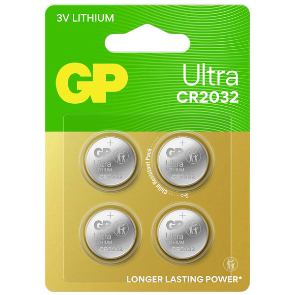 GP GPcr2032Ult387C4 Lithium Ultra Button Cells Batteries Cr2032 3V 220Mah 4Pcs