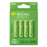 A pack of four ReCyko rechargeable AA batteries with a capacity of 2100mAh.
