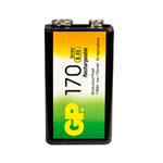 The GP PP3 170mAh Rechargeable Battery has been designed to meet the most stringent needs of today's high drain applications such as Digital Cameras, MD and MP3 players and other portable devices.