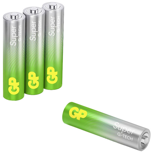 The GP Super AAA battery 4 pc(s) is a size AAA alkali-manganese battery that delivers 1.5 V. Manufactured by GP, these batteries are known for their reliability and power. They are ideal for everyday devices such as remote controls, clocks, and small electronic gadgets.