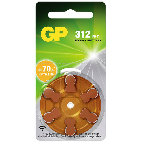 GP ZA312F519C6 Hearing Aid Battery ZA 312 1.4V Zinc Air 6 Pack