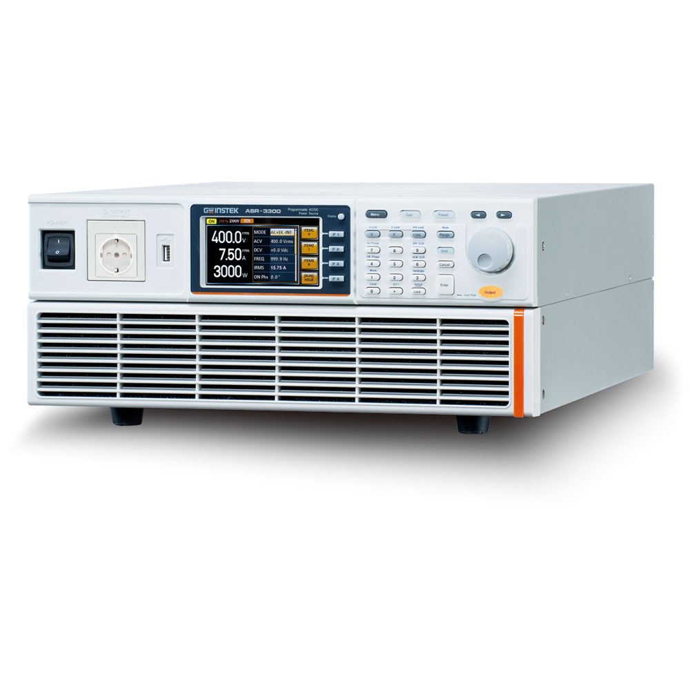 The ASR-3000 Series is an AC+DC power source, featuring high-speed DC voltage rising and falling time ( 100us). There are four models of the series: ASR-3200(2kVA), ASR-3300(3kVA) and ASR-3400 (4kVA). The series can provide rated power output /3400HF during AC output and DC output. Ten ASR-3000 Series output modes are available, including :