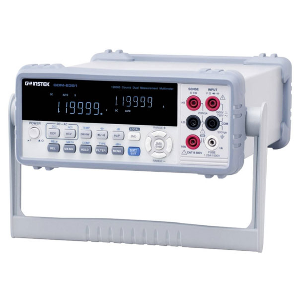 GW Instek presents the new 5 1/2 digit dual measurement multimeter GDM-8351 as a replacement for the GDM-8251A of the same category. The GDM-8351 offers a VFD dual display, a maximum of 120,000 counts, 0.012% basic DC accuracy and USB/RS232C connections to provide the user with high measurement accuracy, clear data monitoring and convenient connection to the computer.