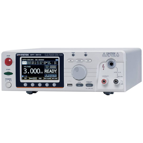 The GPT-9500 series is a three-in-one multi-channel test device that offers AC resistance (max. 5kV), DC resistance (max. 6kV) and insulation resistance (max. 1000V). The design of the series corresponds to the latest requirements of the standard IEC-61010-2-034 and is built on the output platform of AC 150VA. The status of the 8 channels of the GPT-9513 can be set to H, L or X depending on the test requirements, particularly suitable for winding components such as transformers for conducting mutual tests of several points of individual components. The status of the 8 channels of GPT-9503 only provides the setting of H or X, which was better suited for general components such as passive components for high voltage testing between two points.