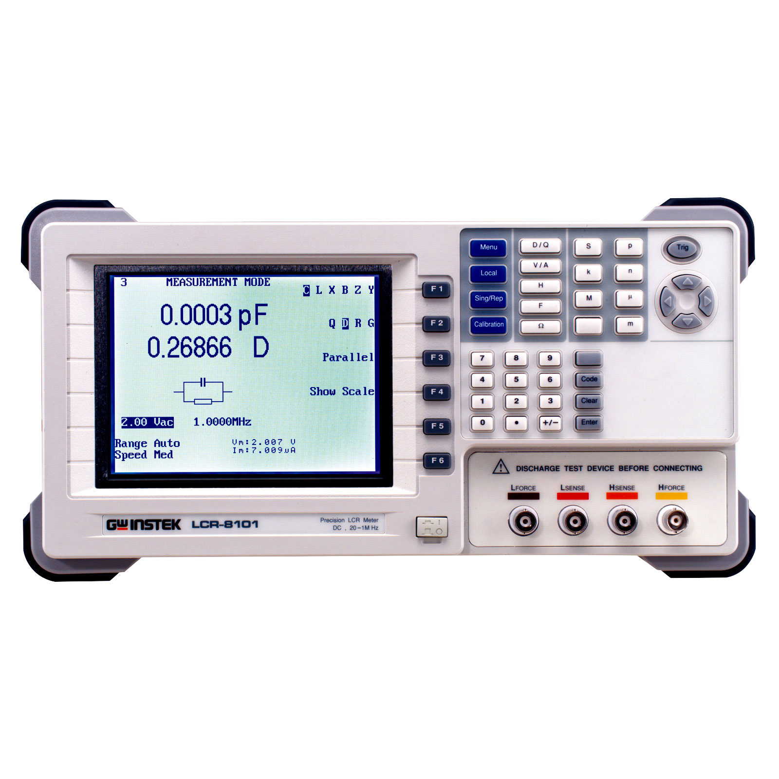 The GW Instek LCR-8110G LCR meter, with a test frequency up to 10MHz, provides accuracy, versatility and high resolution for a wide range of component measurements, even including DC resistance measurement and voltage/current monitoring. The multi-step function of the GW Instek LCR-8110G allows on-screen programming of customized measurement sequence with pass/fail indication.