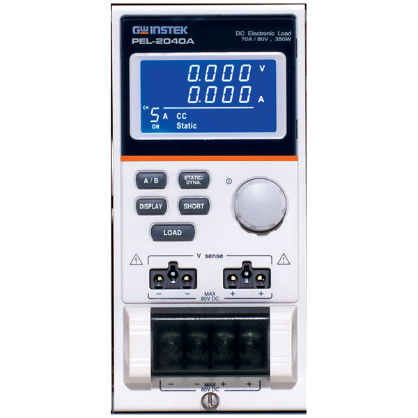 The PEL-2040A is a single channel 350W DC Electronic Load module with a voltage range of 1-80V and 70A current rating, for use with either the PEL-2004 or the PEL-2002 mainframe.
