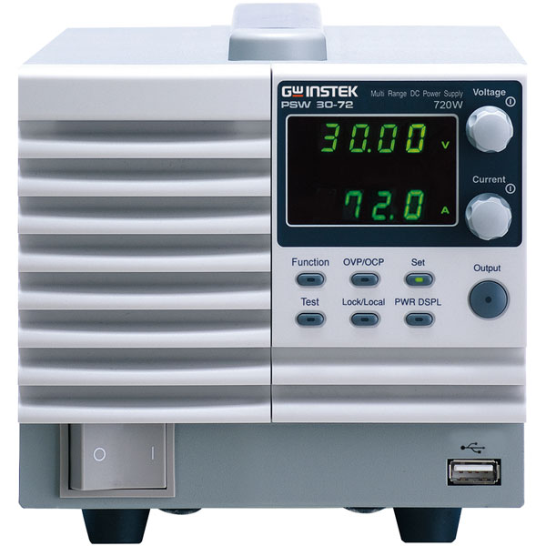 The GW Instek PSW30-72 is a single output multi-range programmable switching DC Power Supply covering a power range up to 720W. The multi-range feature allows the flexible and efficient configuration of voltage and current within the rated power range. As the GW Instek PSW30-72 can be connected in series for maximum 2 units or in parallel for maximum 3 units, the capability of connecting multiple PSW units for higher voltage or higher current output provides a broad coverage of applications.